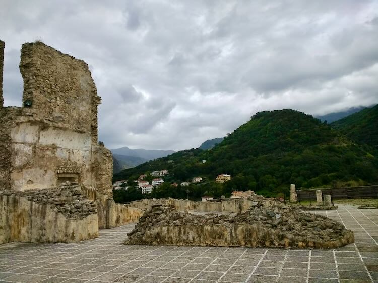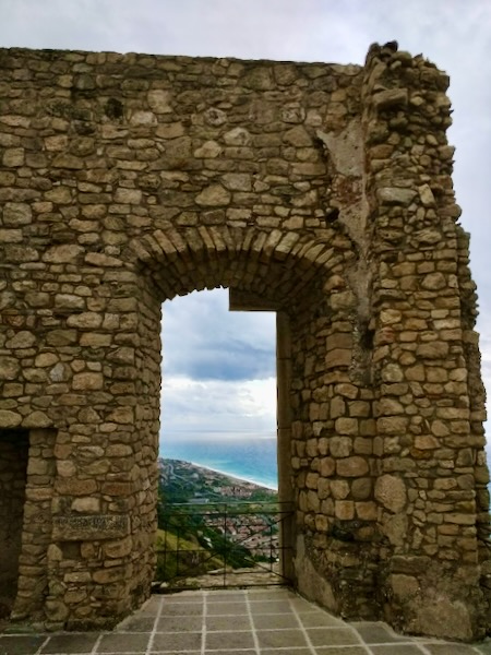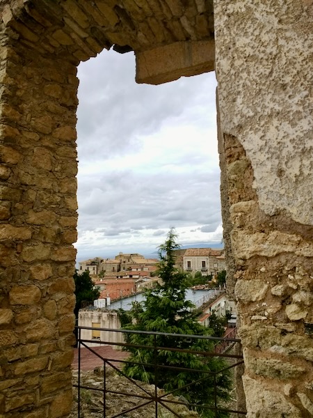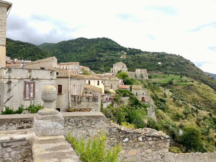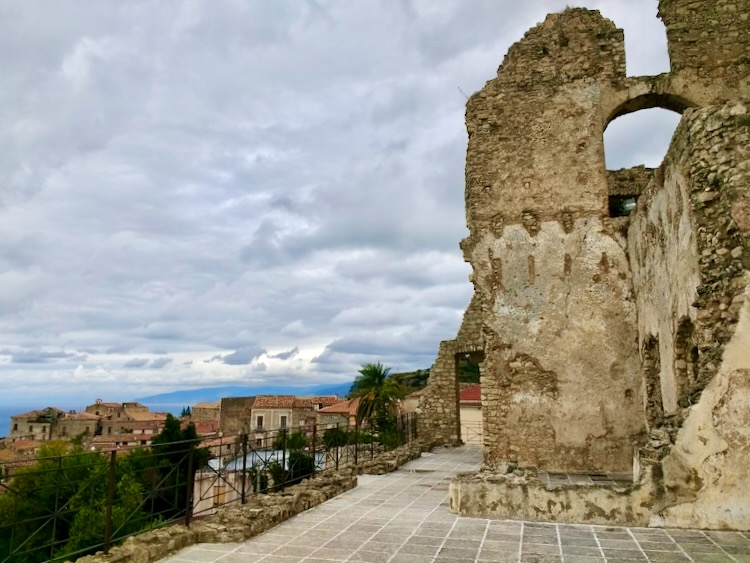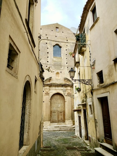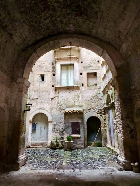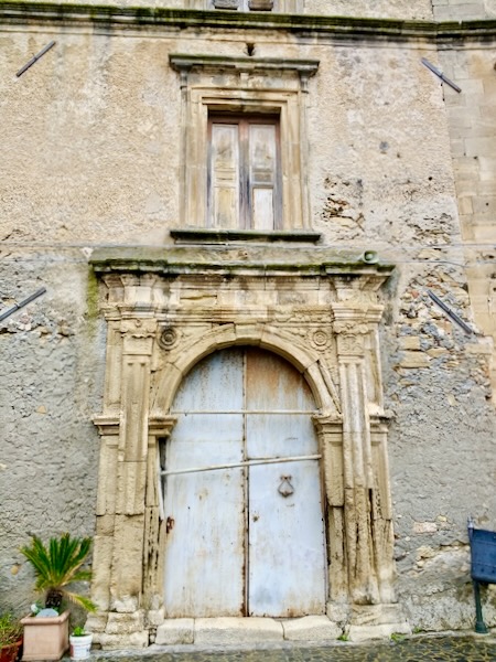 The “Borghi più belli d’Italia” organization characterizes Fiumefreddo Bruzio with the phrase “rovina e rinascita”– ruins and rebirth. Strolling through the old lanes with glimpses of the medieval town walls, you get that sense of a faded glory: historic palazzi with magnificent doorways and interior courtyards that once hosted carriages of the rich and famous, shadows of their former selves and ready for revivification.