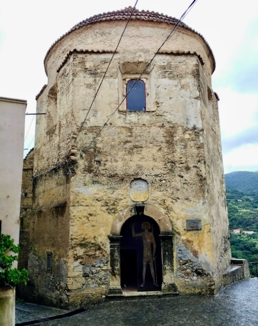 Musing on Salvatore Fiume’s images can take you right into San Rocco Church, which was constructed in the 17th-century into the medieval city walls. His 1970’s interpretation of the saint greets you at the door, and waiting for you inside, you’ll find a depiction of St. Rocco dressed as a brigand as well as his frescos in the cupola. (See my blogpost Italy Travel Post-Covid and Masks.)